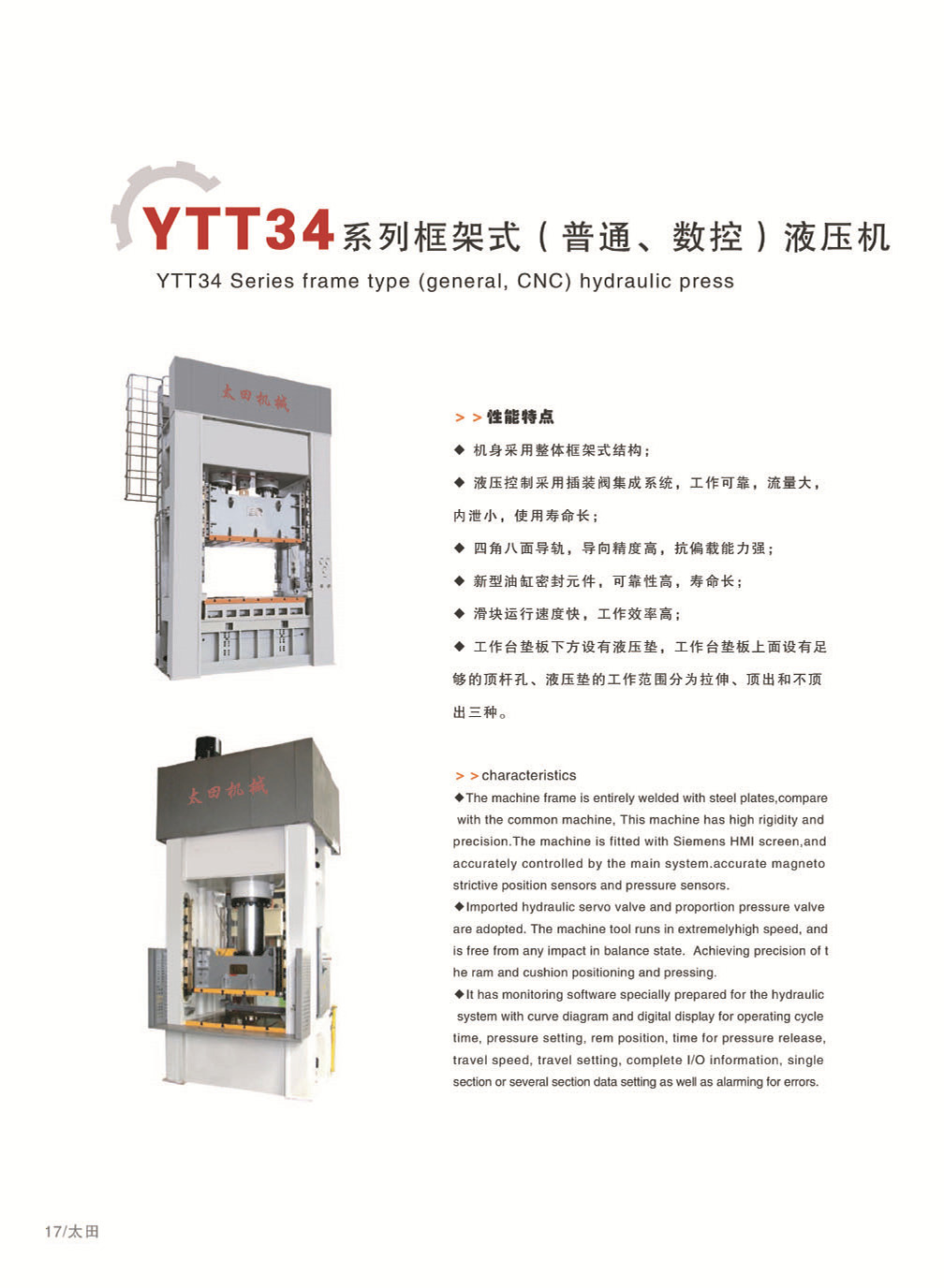 YTT87系列汽車大梁(縱梁)成型液壓機