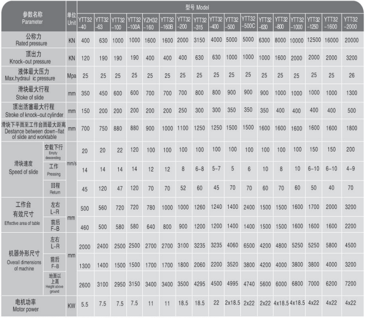 產品介紹:性能特點:計算機優化結構設計,三梁四柱式結構,簡單、經濟、實用;液壓控制采用插裝閥集成系統,動作可靠,使用壽命長,液壓沖擊小,減少了連結管路與泄漏點;獨立的電氣控制系統,工作可靠,動作直觀,維修方便;采用按鈕集中控制,具有調整、半自動兩種操作方式;通